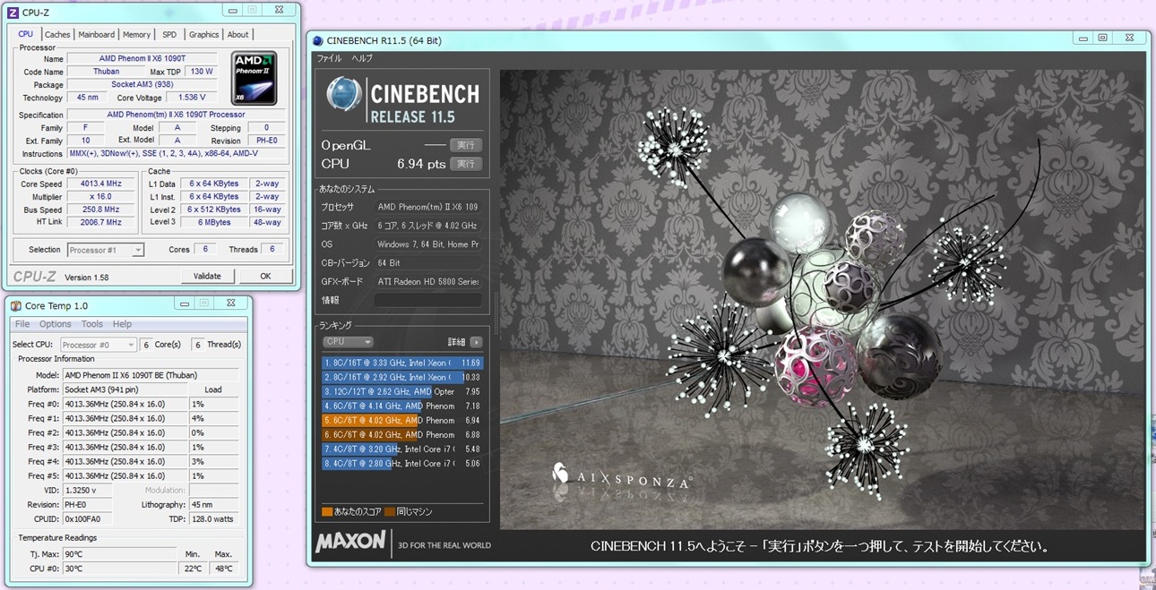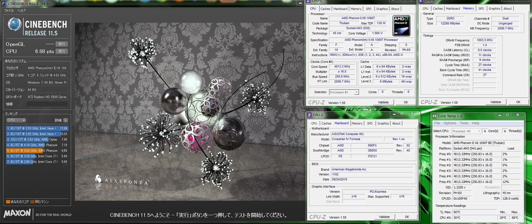 アイドルで29度 Chinebench完走後58度.. これじゃあまりハードなことに使うのは怖いですねw
