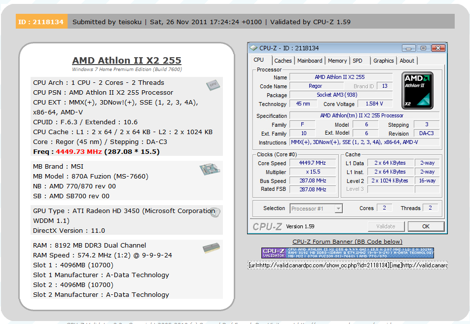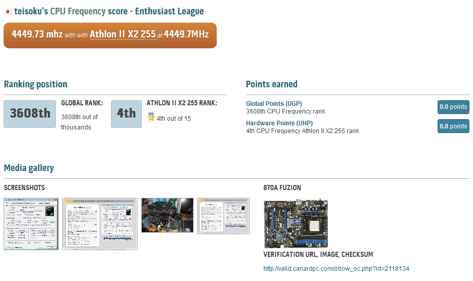 AthlonⅡX2-255のハイクロックの中では4位だった!